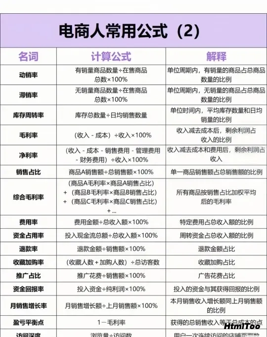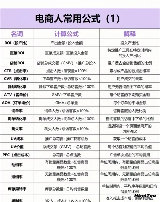 电商必懂的数据公式